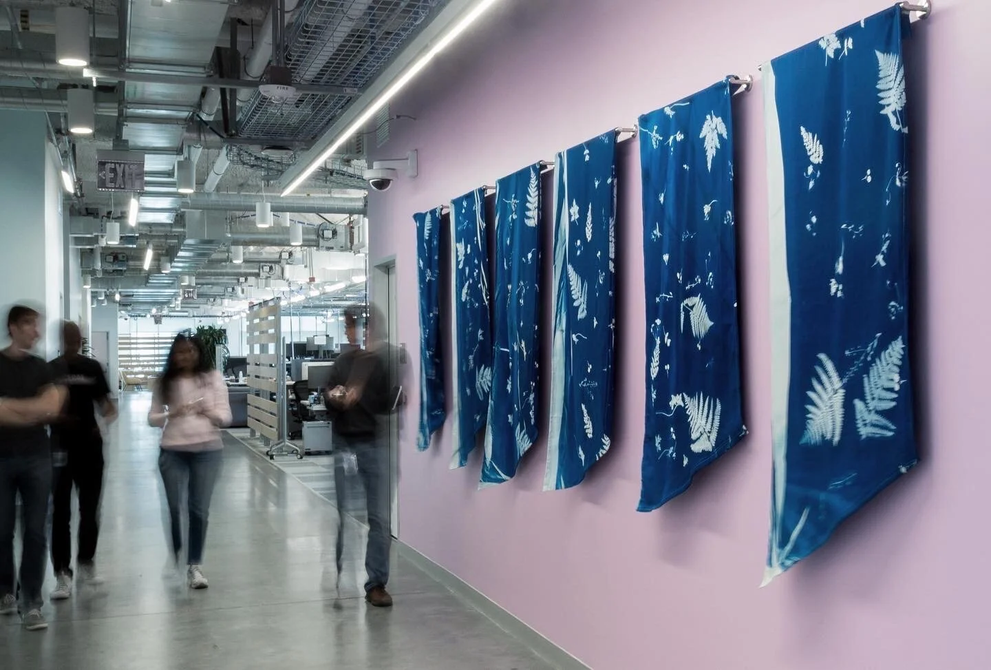 These large cyanotype prints are now installed in the Meta (Facebook) building in Sunnyvale San Francisco as part of the Artist-in-Residence program.